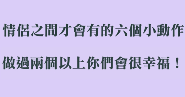 各位讀者安安阿~~我是有錢人這麼想小編Ant!今天要來說說關於「情侶之間才會有的六個小動作,做過兩個以上你們會很幸福!」,不知道大家有沒有興趣呢!一起來看看吧!