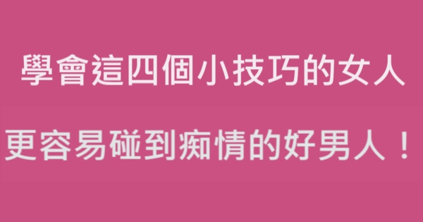 各位讀者安安阿~~我是有錢人這麼想小編Ant!今天要來說說關於「學會這四個小技巧的女人,更容易碰到痴情的好男人!」,不知道大家有沒有興趣呢!一起來看看吧!