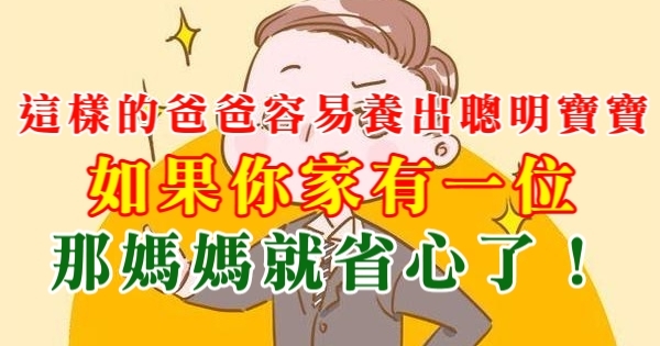 大家好,我是小寶貝媽媽經小編葡萄!今天要來說說關於「這樣的爸爸容易養出聰明寶寶!如果你家有一位,那媽媽就省心了!」的事!不知道大家對於這個有多了解呢?一起來看看吧!