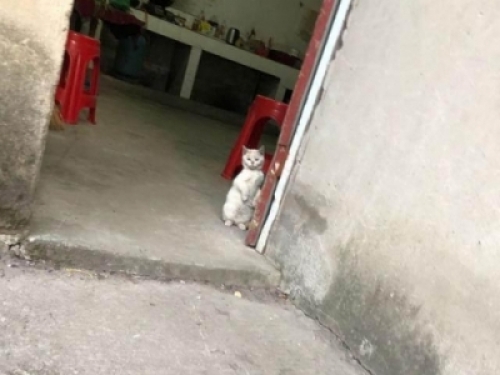 小環出差回來後,都是二十多天以後了,她回來後要做的第一件事,就是從母親那把貓咪給接回到自己那,不過,等她趕到母親家裡第一眼看到貓咪的時候,真是被貓咪萌萌的樣子給嚇懵了,咋的了?原來,這隻貓咪似乎知道自己要來一樣,一早就站在門口不斷的看著外面,這樣子看著就像是一個小大人一樣。