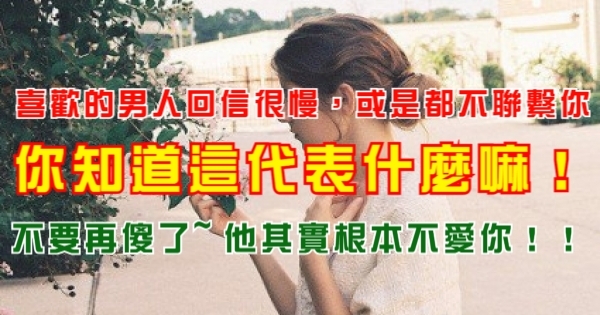 如果你喜歡的男人回信很慢,或是都不聯繫你,你知道這代表什麼嘛!不要傻了~他其實根本不愛你!