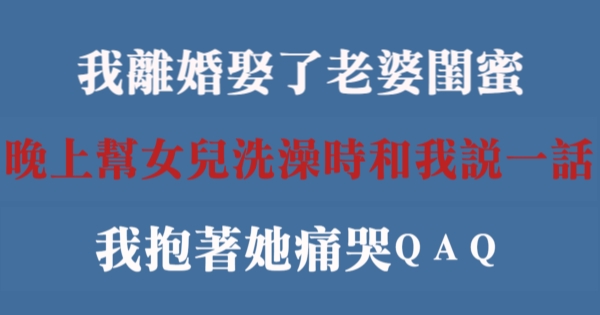 哈摟哈摟親愛的大家~~我是有錢人這麼想小編Yukin!今天要來說說關「我離婚娶了老婆閨蜜,晚上幫女兒洗澡時,女兒剛我說「這段話」我抱著她痛哭QAQ」的事件!讓我們一起來看看吧!