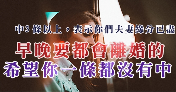 中3條以上,表示你們夫妻緣分已盡,早晚要都會離婚的!!希望你一條都沒有中!