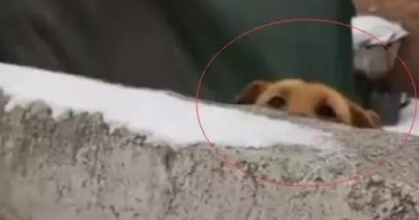 網友一叫它,大黃狗就探出頭來了,餓壞了吧。