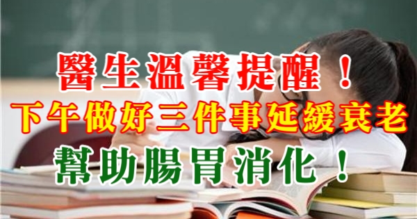 醫生溫馨提醒!下午做好三件事延緩衰老,幫助腸胃消化!!