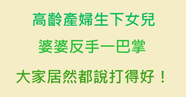 哈摟哈摟親愛的大家~~我是有錢人這麼想小編Pineapple!今天要來說說關「高齡產婦生下女兒,婆婆反手一巴掌,大家居然都說打得好!」的事件!讓我們一起來看看吧!