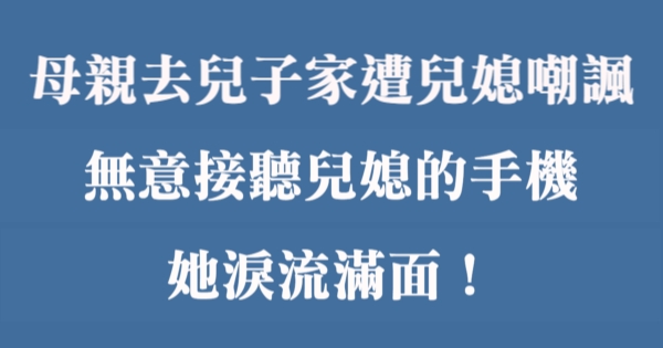 哈摟哈摟親愛的大家~~我是有錢人這麼想小編Pineapple!今天要來說說關「農村母親第一次去城裡兒子家,卻遭孝順兒媳嘲諷,無意接聽兒媳的手機,她淚流滿面!」的事件!讓我們一起來看看吧!