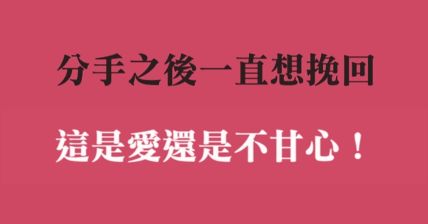各位讀者安安阿~~我是有錢人這麼想小編Ant!今天要來說說關於「分手之後一直想挽回,這是愛還是不甘心!」,不知道大家有沒有興趣呢!一起來看看吧!