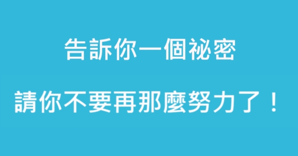 告訴你一個祕密:請你不要再那麼努力了!!!