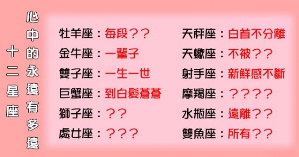 「愛著愛著就永遠」!12星座心中的「永遠」到底有多遠!