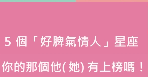 「5個」好脾氣情人星座,你的那個他(她)有上榜嗎!