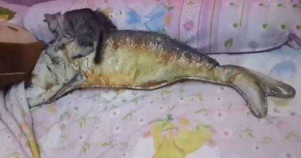 貓咪還以為自己在作夢!主人幫喵皇買了一個烤魚抱枕,然後喵皇就...喵皇,您這是何苦啊~?(́◉◞౪◟◉‵)