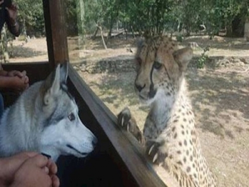 哈士奇在動物園看到大貓,以為它會怕害,沒想到