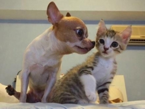 一位網友在社交網站上曬出自家貓咪剛到家的時候,被家里的汪星人看見了,狗狗好像很喜歡貓咪一樣,不停的想要親牠一樣,可貓咪好像有點怕不停的再躲,畫面看起來有點萌。可就在僅僅的三個月過去了,狗還是那個狗,隻是這貓看起來有點不一樣了,而且牠兩做的動作好像還有點熟悉啊,怎麼看起來和當初貓咪剛到家的時候是一模一樣的,隻不過兩個家夥的位置互換了!