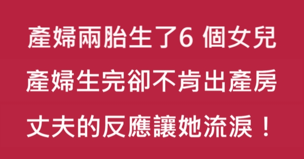 哈摟哈摟各位讀者~~我是有錢人這麼想小編Choco!今天要來說說關於「33歲產婦兩胎生了6個女兒,產婦生完卻不肯出產房,丈夫的反應讓她流淚!」,不知道大家有沒有興趣呢!一起來看看是怎麼樣的事吧!
