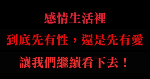 感情生活裡,到底先有性,還是先有愛,讓我們繼續看下去!!