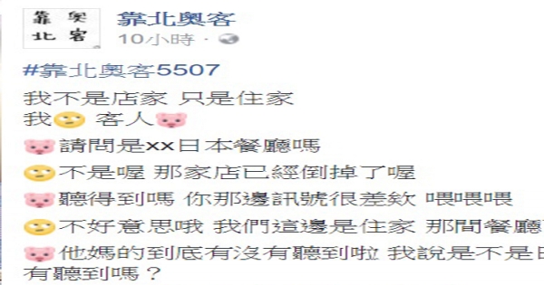 客人:他媽的到底有沒有聽到啦 我說是不是日本餐廳 你耳朵是長在哪裡啊 有聽到嗎?