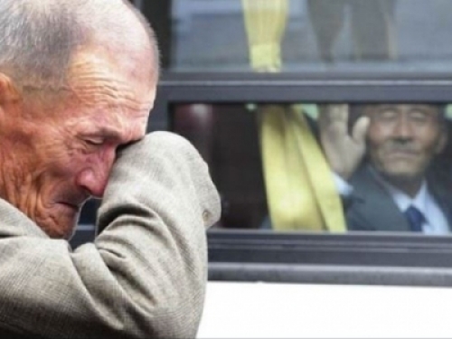 #1 這名來自北韓的男子揮著手,與他在南韓的兄弟短暫重逢後,他們互相道別。這次再見,有可能再也不見了。