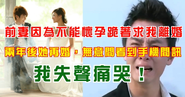 前妻因為不能懷孕跪著求我離婚,兩年後她再婚,我包禮3萬,無意間看到手機間訊,我失聲痛哭!!
