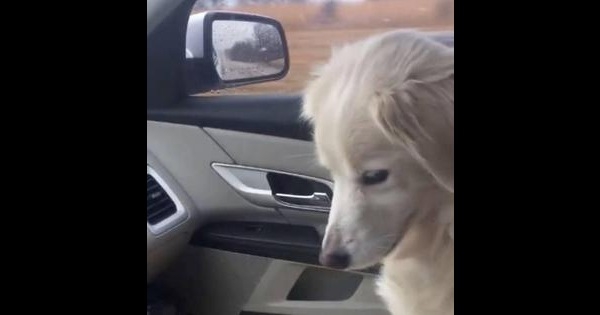 回家途中,金毛坐在副駕駛上,但突然之間它伸出左爪,一個小舉動,讓人心顫不已。
