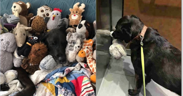根據The Dodo在2017年10月30日的報導,有一隻好有愛的狗狗在過去十年來都友好的對待每一個絨毛玩具,到現在已經有40多個了~