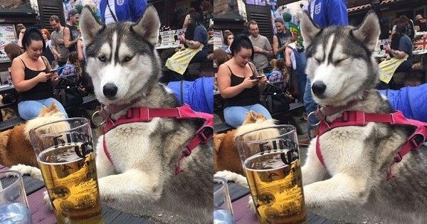 外國網友出門喝酒帶上了哈士奇,結果二哈偷偷喝了杯啤酒,喝完酒整隻狗都不好了!