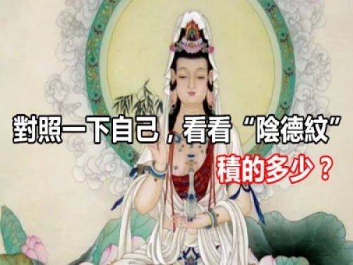 廣積陰德,做了很多善事的人眼下會有一重或二重或三重細如絲的細紋,此紋細而有光澤優美,是名陰德紋。若果善人行善,廣利眾生,眼下就會出現此紋。若果你常行善,眼下出現了陰德紋,哪恭喜你,這是增福延壽,子賢孫貴之徵兆。如果你常行不善之事及發不善之心,眼下會發黑下陷。發黑下陷還是一般的,真正嚴重的是眼下出現堅紋,如針刺眼,此乃克子刑孫之兆。