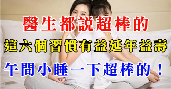 大家好,我是健康一點靈小編CA!今天要來說說關於「醫生都說超棒的!這六個習慣有益延年益壽,午間小睡一下超棒的!」的事!不知道大家對於這個有多了解呢?一起來看看吧!