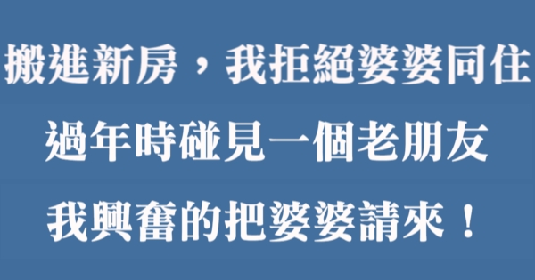 哈摟哈摟各位讀者~~我是有錢人這麼想小編Pineapple!今天要來說說關於「搬進新房,我拒絕婆婆同住,過年時碰見一個老朋友,我興奮的把婆婆請來!」,不知道大家有沒有興趣呢!一起來看看是怎麼樣的事吧!