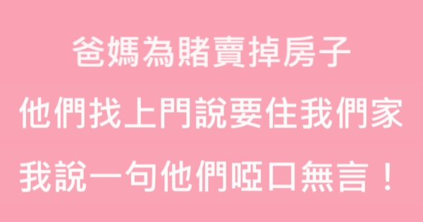 哈摟哈摟各位讀者~~我是有錢人這麼想小編Choco!今天要來說說關於「爸媽為賭賣掉房子,他們找上門說要住我們家,我說一句他們啞口無言!」,不知道大家有沒有興趣呢!一起來看看是怎麼樣的事吧!