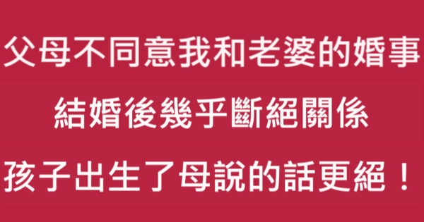 哈摟哈摟各位讀者~~我是有錢人這麼想小編Choco!今天要來說說關於「父母不同意我和老婆的婚事,結婚後幾乎斷絕關係,孩子出生了母說的話更絕!」,不知道大家有沒有興趣呢!一起來看看是怎麼樣的事吧!