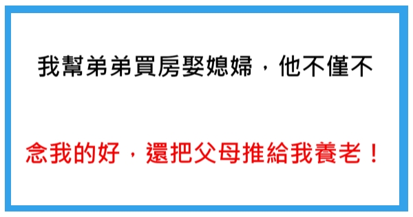 我幫弟弟買房娶媳婦,他不念我對他的好,還把父母推給我養老!