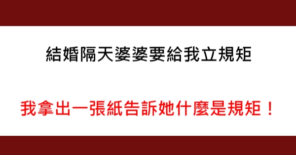 結婚隔天婆婆要立規矩,我拿出一張紙告訴她什麼是規矩!