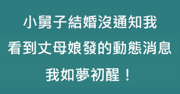 哈摟哈摟各位讀者~~我是有錢人這麼想小編Pineapple!今天要來說說關於「小舅子結婚沒通知我,看到丈母娘發的動態消息,我如夢初醒!」,不知道大家有沒有興趣呢!一起來看看是怎麼樣的事吧!