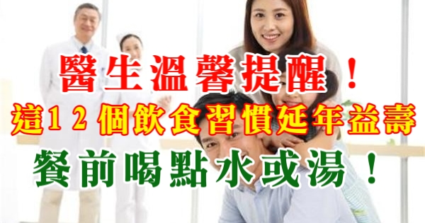 大家好,我是健康一點靈小編CA!今天要來說說關於「醫生溫馨提醒!這12個飲食習慣延年益壽,餐前喝點水或湯!」的事!不知道大家對於這個有多了解呢?一起來看看吧!