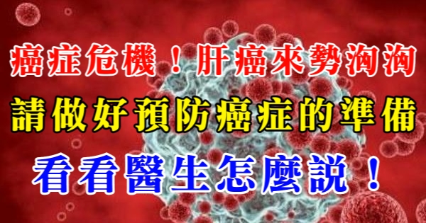 癌症危機!肝癌來勢洶洶,請做好預防癌症的準備,看看醫生怎麼說!!