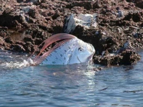 國外也有相關皇帶魚報導,墨西哥科爾蒂斯海,遊客發現遠處海域冒出兩個巨大的腦袋,人們紛紛猜測這可能是兩條大魚,但隨著這兩隻生物向淺水區遊過來,徹底打破了他們的猜想。