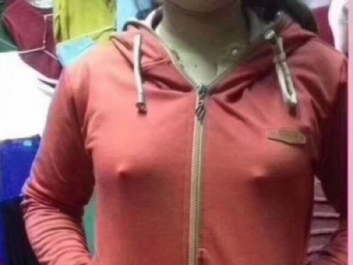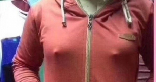 隻見照片中一名穿橘色連帽外套的馬尾妹,疑似沒穿內衣,胸前兩點超明顯激凸....而另外一張照片則是女子把外套脫掉的畫面,沒想到網友看完全部笑瘋了直呼“這2點有點霸氣”XD