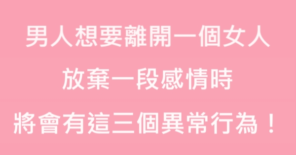大家好,我是有錢人這麼想小編CA!今天要來說說關於「男人想要離開一個女人:放棄一段感情時,將會有這三個異常行為!」的事!不知道大家對於這個有多了解呢?一起來看看吧!