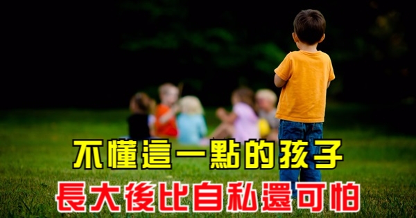 大家好,我是小寶貝媽媽經小編Uber!今天要來說說關於「不懂這一點的孩子,長大後比自私還可怕!」的事!不知道大家對於這個有多了解呢?一起來看看吧!