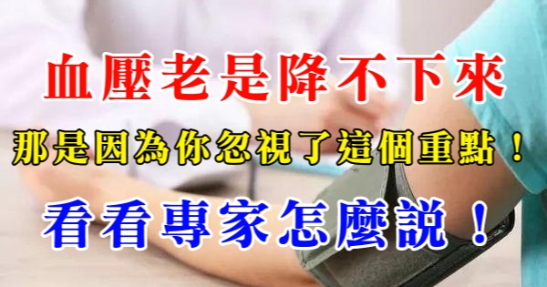 大家好,我是健康一點靈小編葡萄!今天要來說說關於「看看專家怎麼說!血壓老是降不下來,那是因為你忽視了這個重點!」的事!不知道大家對於這個有多了解呢?一起來看看吧!