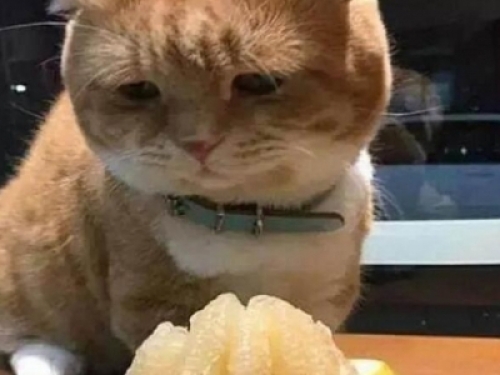 而且貓咪對於吃的東西,還是非常敏銳的,比如說有一位鏟屎官家裡就養了一隻非常胖的橘貓,有一次鏟屎官剛剝好一個柚子,正打算開吃呢,結果貓咪唰一下就竄了過來,然後露出了一副哀求的表情:主人給我吃一點吧!