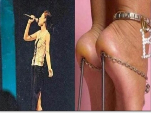 但是天後王菲的高跟鞋真的是驚天地泣鬼神啊,就像是踩在釘子上一樣。