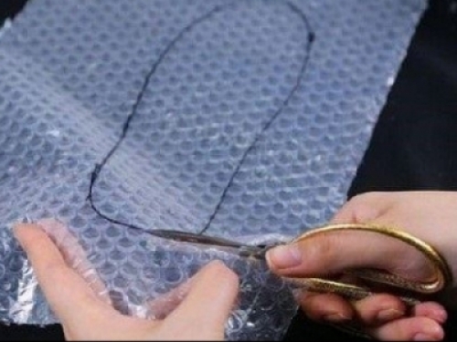 把氣泡墊剪下來放在鞋墊下面可以防止鞋墊亂跑,又使鞋底變軟還能防潮保暖。