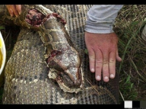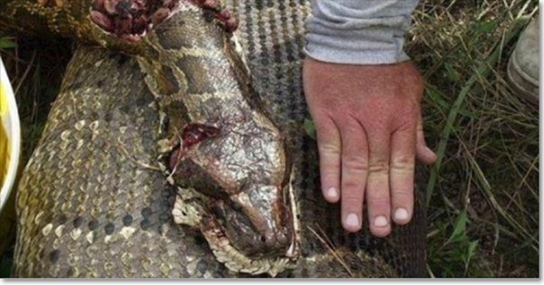 巨蟒「懷孕」慘死野外,男子剖開蛇肚子後....發現另一件恐怖事!!