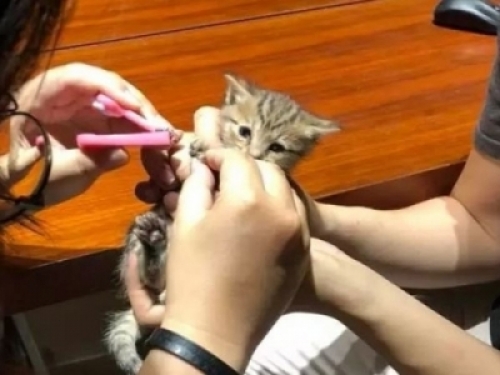 小貓大概三四周大,幾個人買了奶瓶奶粉,還用公司的廁所水池給渾身是灰的小貓洗了個澡,第二天就找了一個有養貓經驗的朋友,把它送了過去——放在公司養可不是事兒啊,都來擼貓誰還有心工作啊?