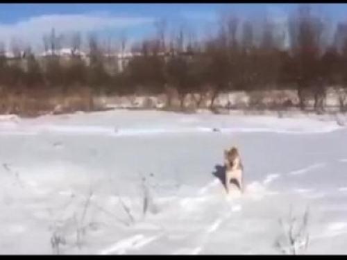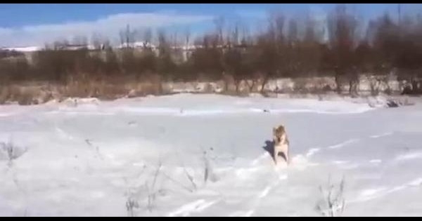 狗狗在雪中過獨木橋,主人叫牠不要過,但牠不聽,下場整個HEN悽慘!!