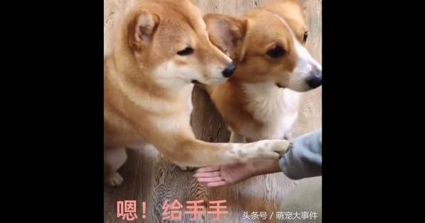 很多養狗的主人會教狗狗一些簡單的小技能,比如握手就是最常見的了,這個狗狗學起來也特別簡單,重複拿起狗爪子併發出指令,然後獎勵一塊吃的,用不了幾天,狗狗就能學會了。這家主人原本養了條柯基,最近又來了條柴犬,這天主人正準備訓練柴犬握手,做對了就會有好吃的獎勵