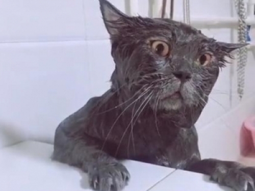很多貓在洗澡的時候因為緊張、害怕還直接對鏟屎官動手的,它們反手就是幾爪子,鏟屎官的手上瞬間多了幾道血痕,但是這些都是阻擋不了鏟屎官們給貓洗澡的決心的。下面這位鏟屎官家裡就養了一隻貓咪,一天,鏟屎官就給貓咪洗澡了,變成落湯貓後,貓就這樣盯著鏟屎官看。