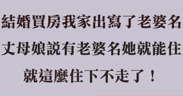 結婚買房我家出寫了老婆名,丈母娘卻說有老婆名她就能住,就這麼住下不走了!
